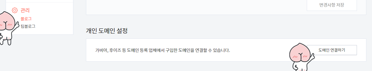 티스토리 관리에서 블로그를 클릭하고 개인 도메인 설정에서 도메인 연결하기를 클릭합니다.