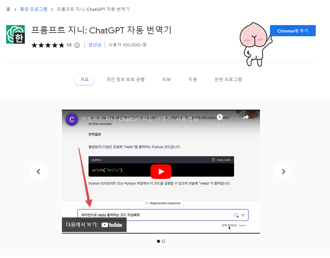 3. 프롬프트 지니를 클릭한 후 크롬에 추가를 클릭합니다.