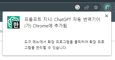 6. 다시 ChatGPT에 접속하면 입력창 밑에 자동번역 아이콘이 생긴 것을 확인할 수 있습니다.