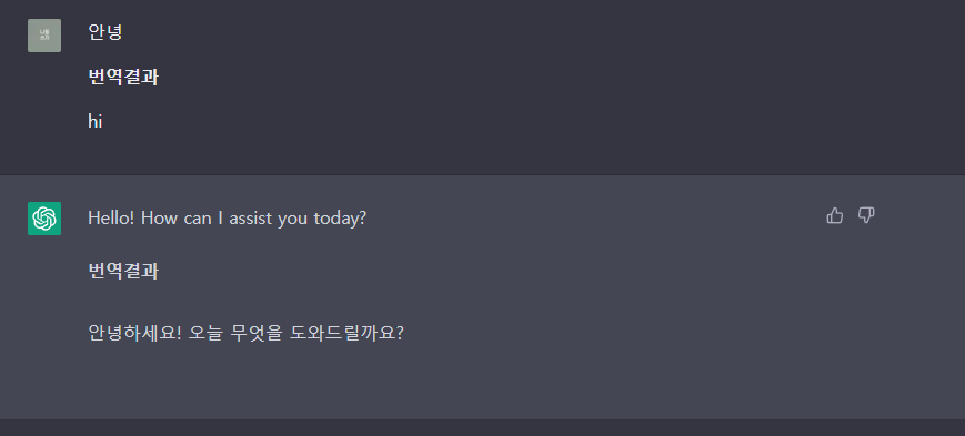 7. 한글로 질문을 하면 ChatGPT가 자동으로 영문으로 번역을 하고, 영문으로 답을 한 뒤 바로 한글로 번역이 되어 답변이 나옵니다.